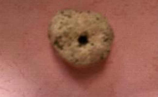 Batu ini berbentuk bulat seperti batu pada umumnya. Ukuran batu tersebut memiliki panjang 2,4 mm, lebar 1,9 mm, dan tinggi 1,1 mm. Batu ini memiliki warna putih gading tidak tembus cahaya.