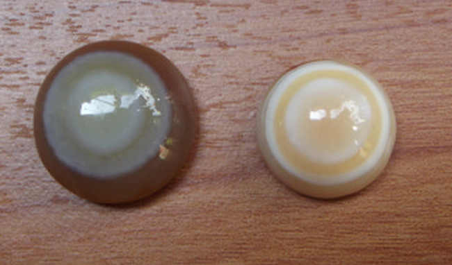 Batu ini berbentuk bulat setengah telur dengan bagian atas berbentuk kubah. Ukuran batu ini berdiameter 10,5 mm dan tingginya 6 mm. Batu ini juga memiliki variasi warna putih dan tidak tembus cahaya.